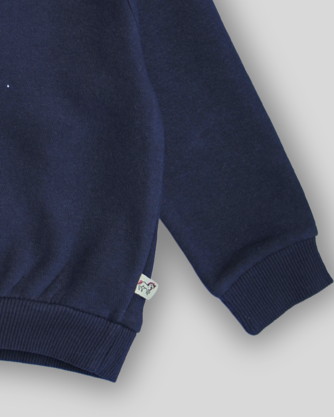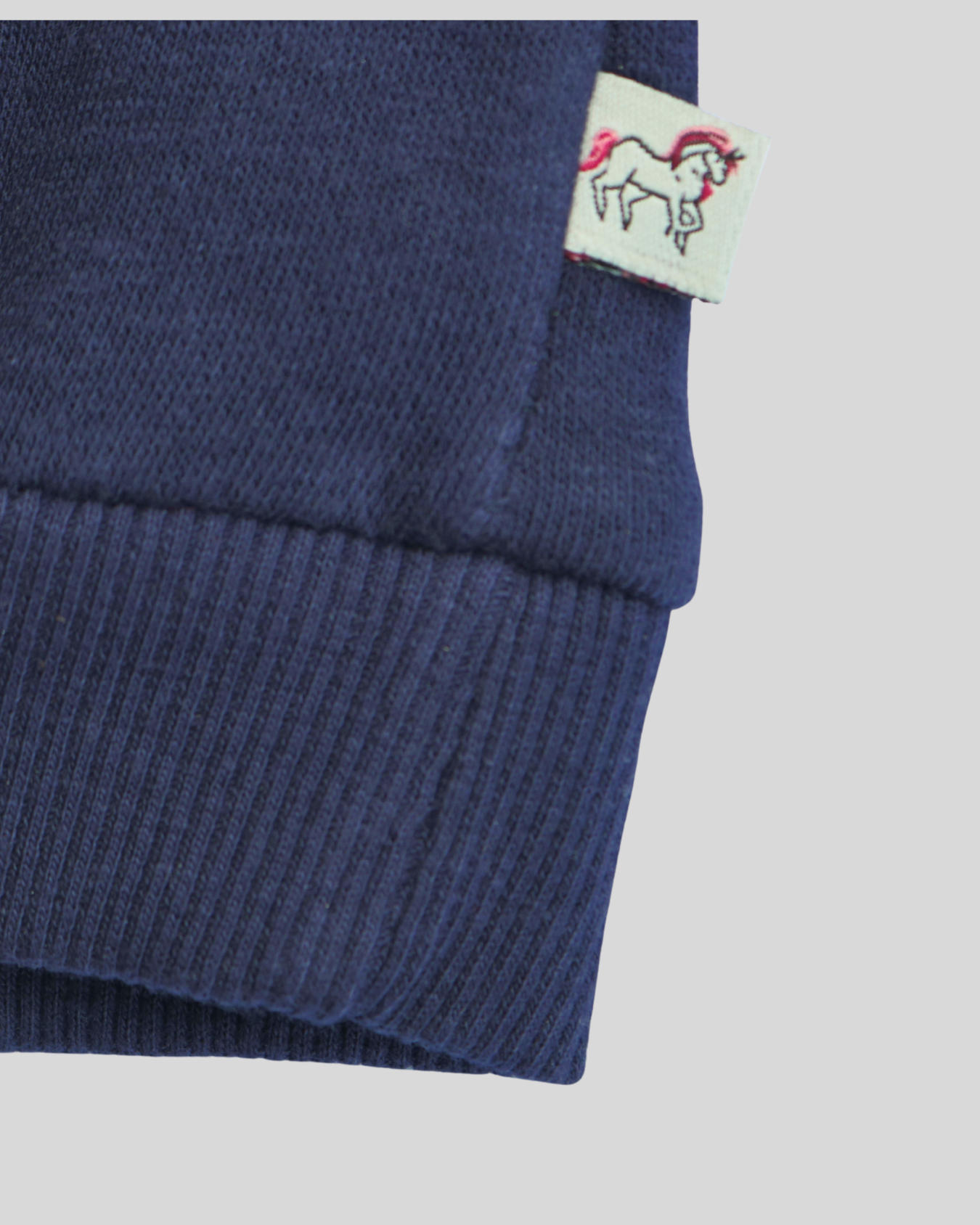 Let her imagination soar with this enchanting Magical Unicorn Print Fleece Sweatshirt. This beautiful girls jumper is crafted from thick, soft cotton fleece fabric, making it the perfect layer to provide superior warmth and comfort while she dreams of flying mythical creatures. Features a stunning white Unicorn with wings, a glittering horn, and a flowing pink and magenta mane, set against a deep navy background. The comfortable crew neck and thick, ribbed cuffs and hem help lock in heat, ensuring a snug, cozy fit that protects her from the chill.